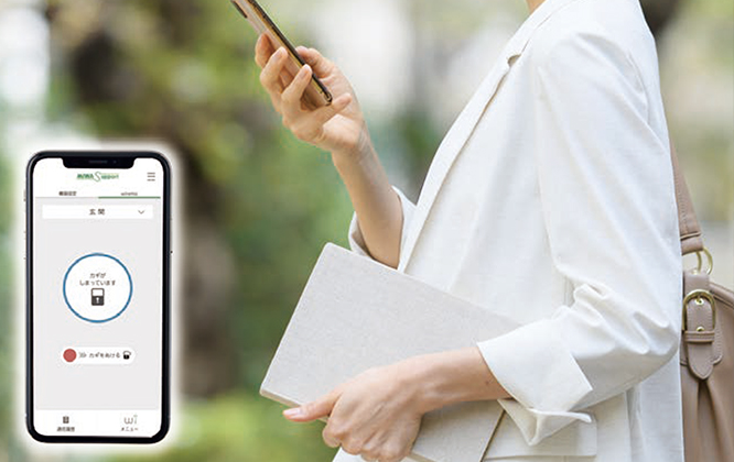 スマートフォンで遠隔所から状態確認や施錠操作が可能な、機器設定・ワイヤレスリモートシステムアプリ「MIWA Support」も導入可能です。